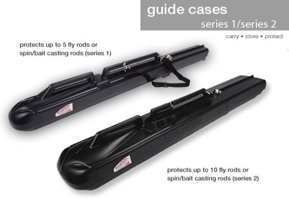 | GUIDE CASES SERIES 1-$109.95 6 5/8"x5" INSIDE--LENGTH 48" TO 83"=7lbs. WILL HOLD UP TO 7 SPEY RODS IN BAGS OR 4 IN 2" TUBES GUIDE CASESS SERIES 2-$169.95 11"x6" INSIDE--LENGTH 48" TO 83"=12lbs. GUIDE CASES SERIES 3-$169.95-BY REQUEST 14 1/2"X7 7/8" INSIDE--42" TO 72"=14lbs. |
